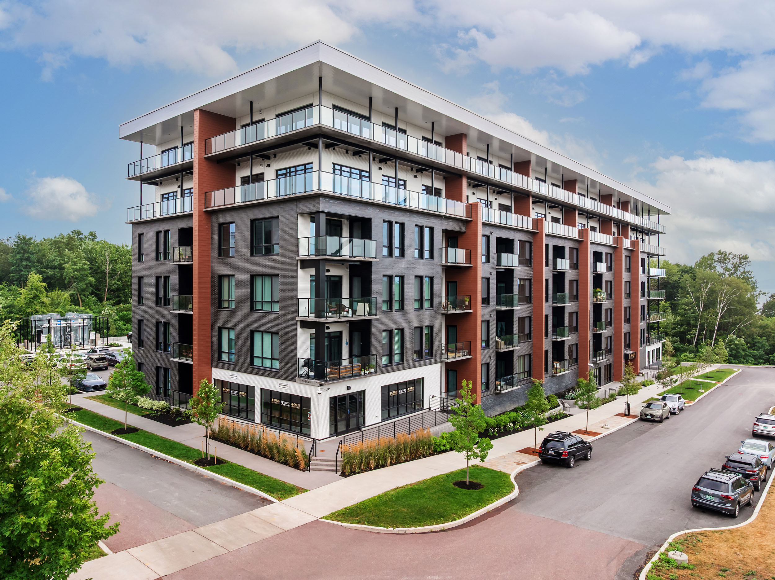 A six-storey residential building with two levels of parking, offering 122 units with stunning views of Lake Champlain. The development features a blend of luxury condominiums and apartments, combining modern design with upscale living.