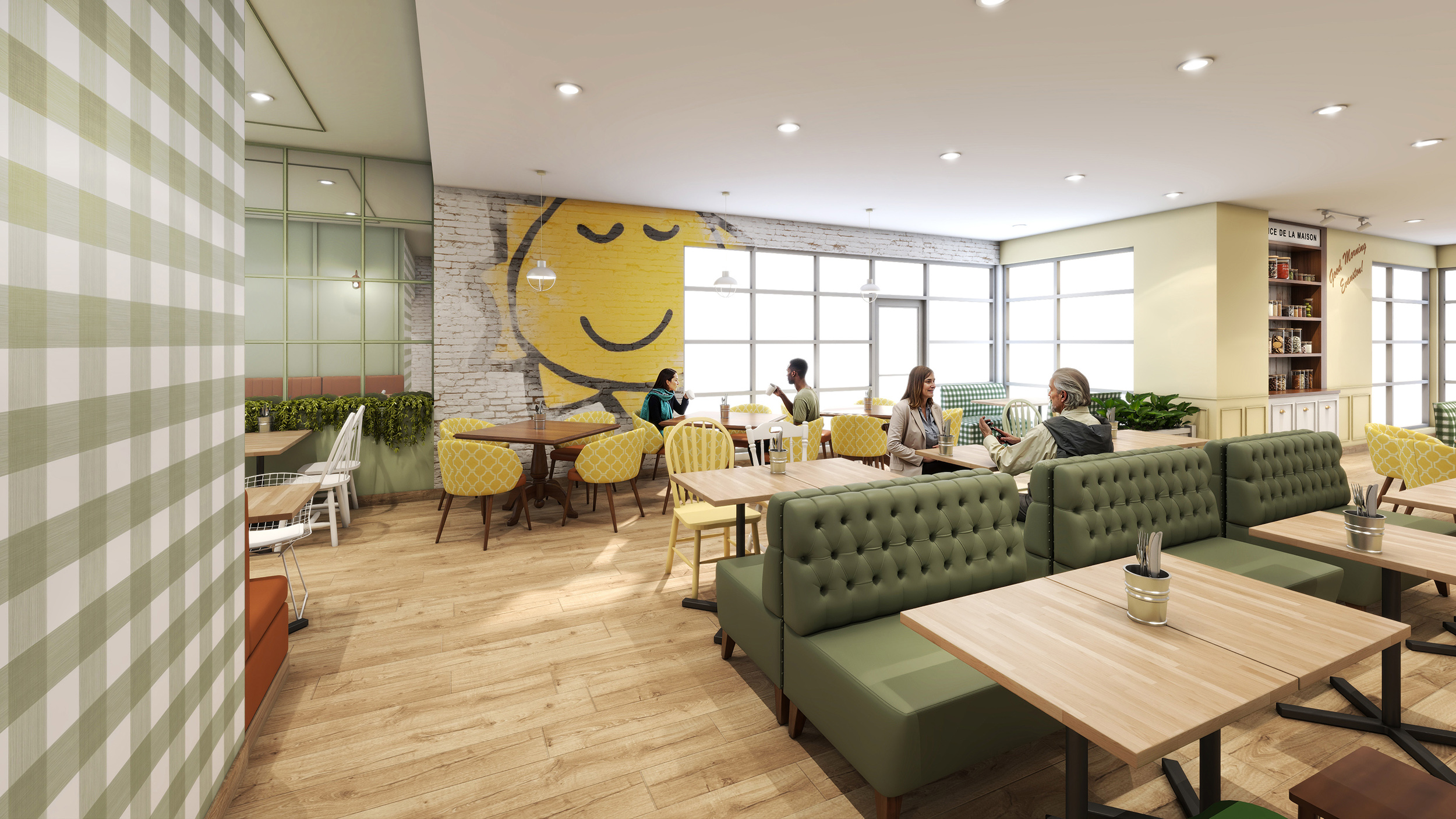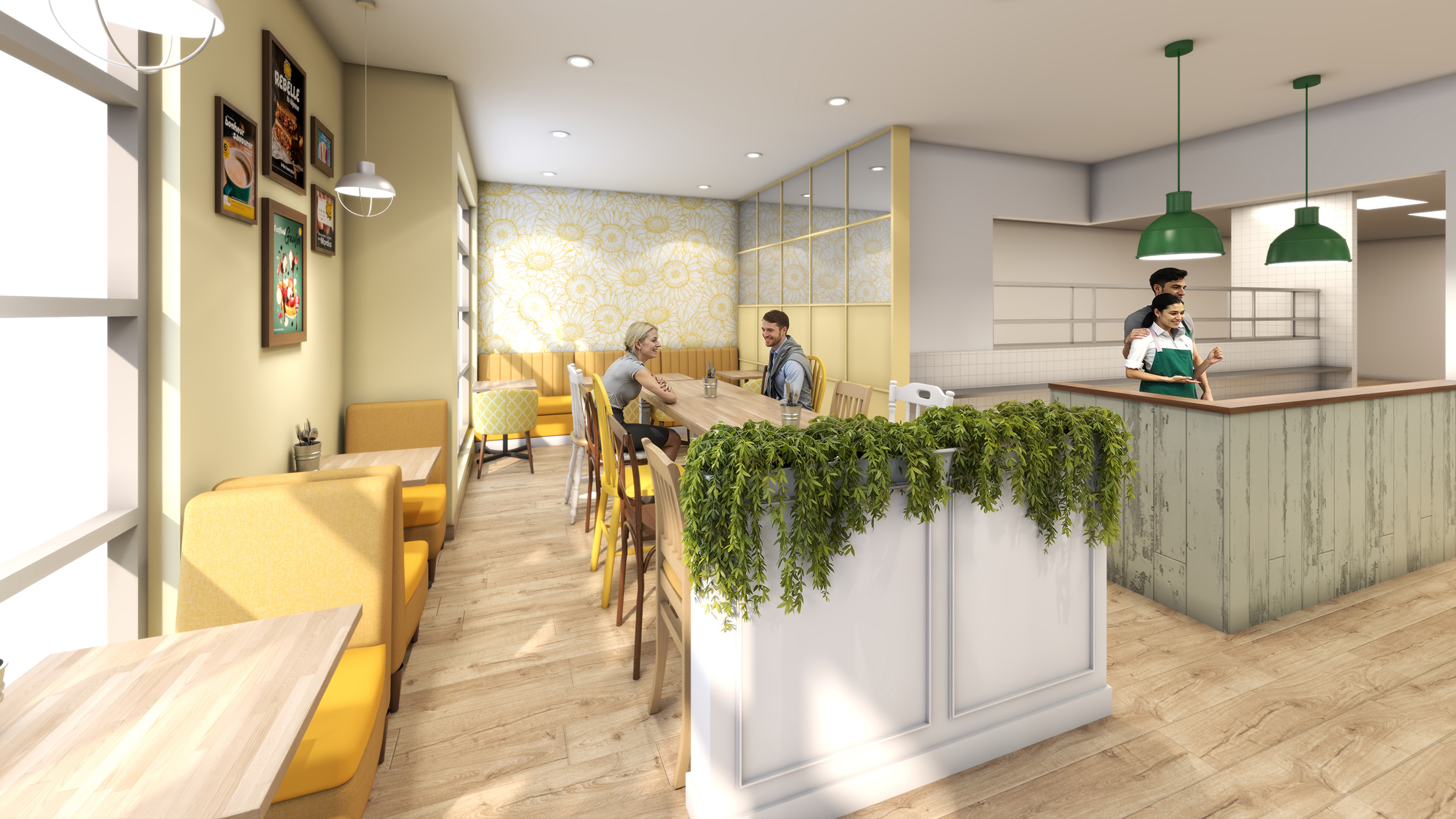 Le design intérieur propose une ambiance renouvelée, lumineuse et conviviale, adaptée aux environnements de restauration contemporains.