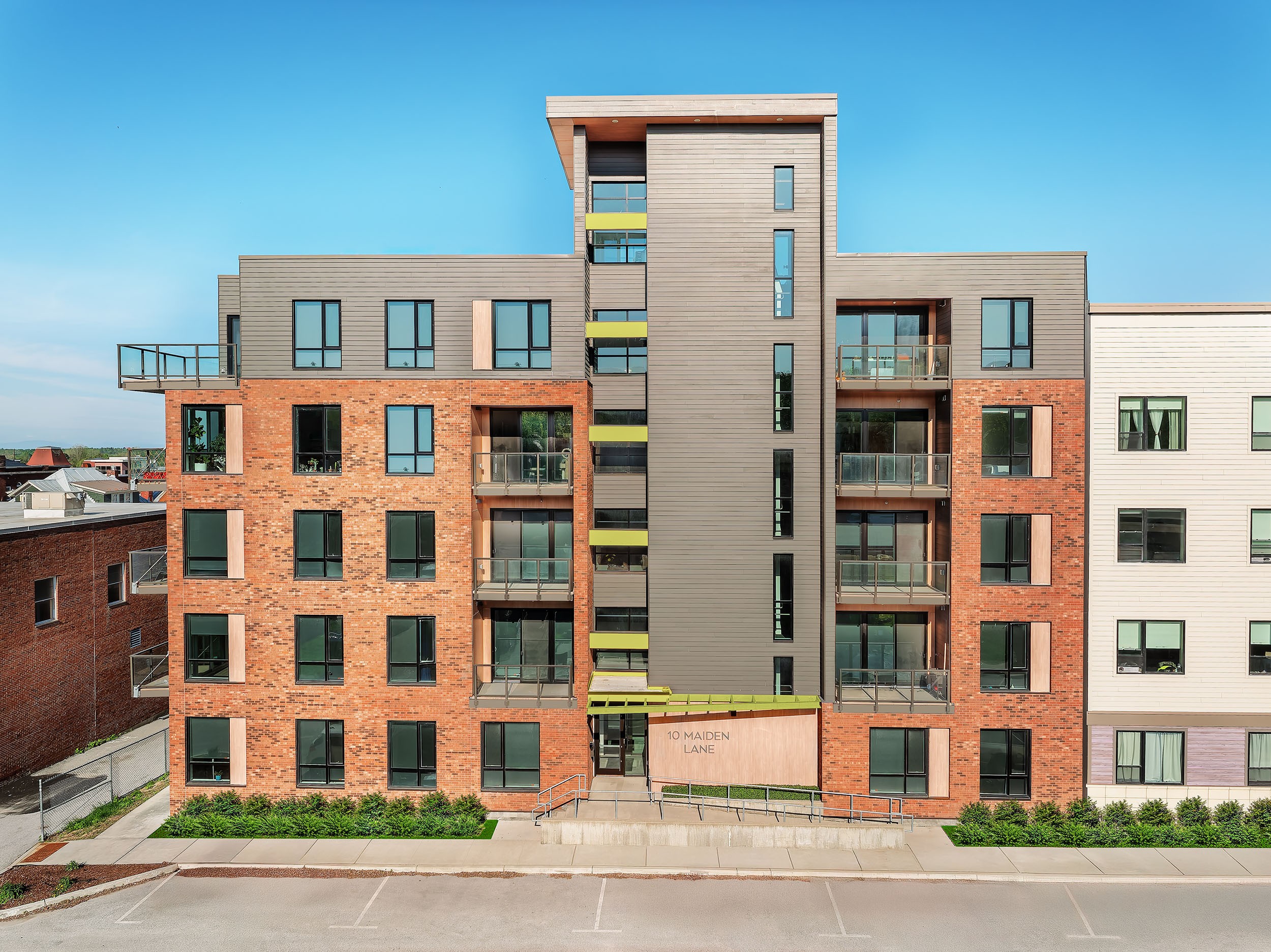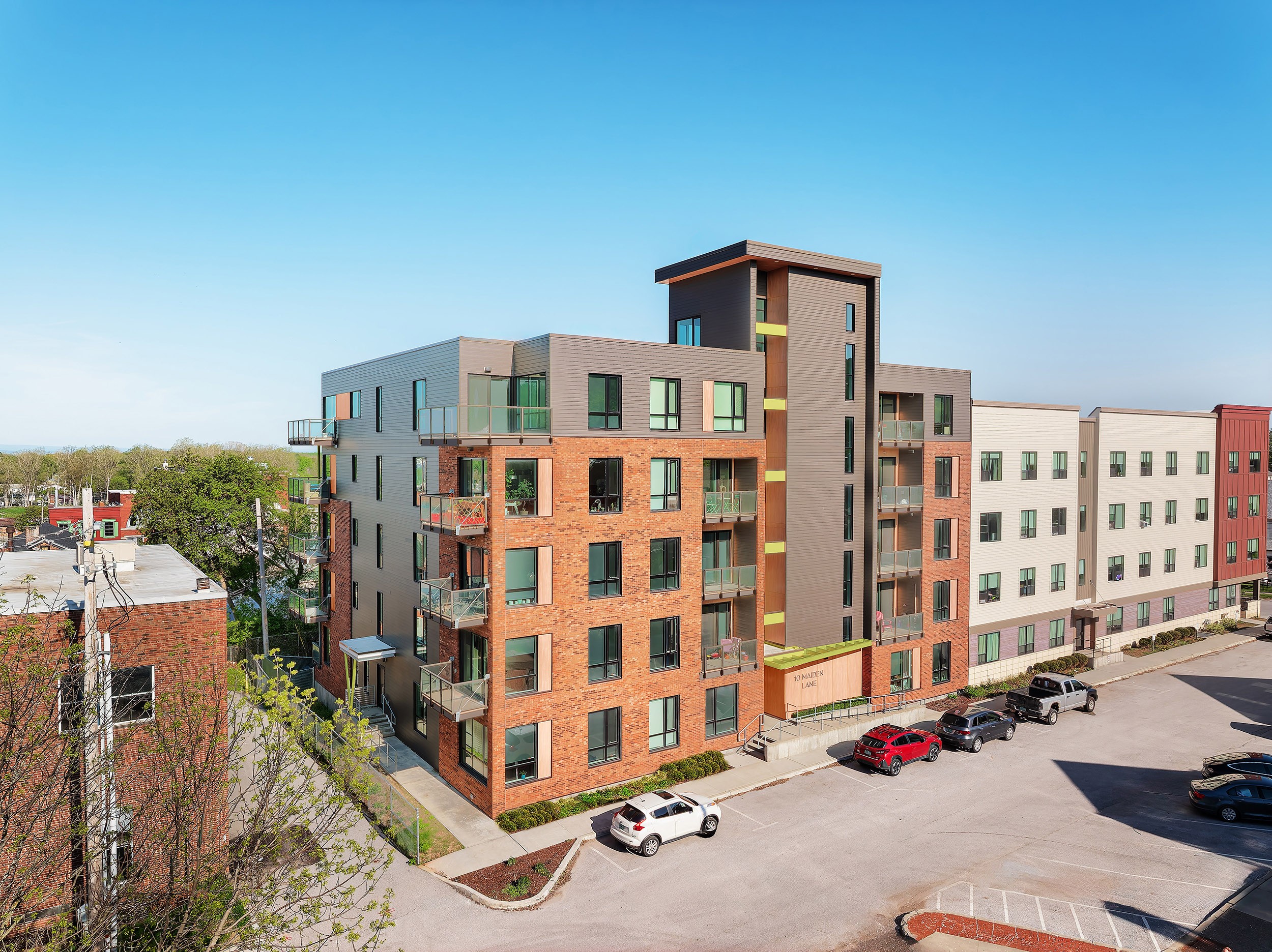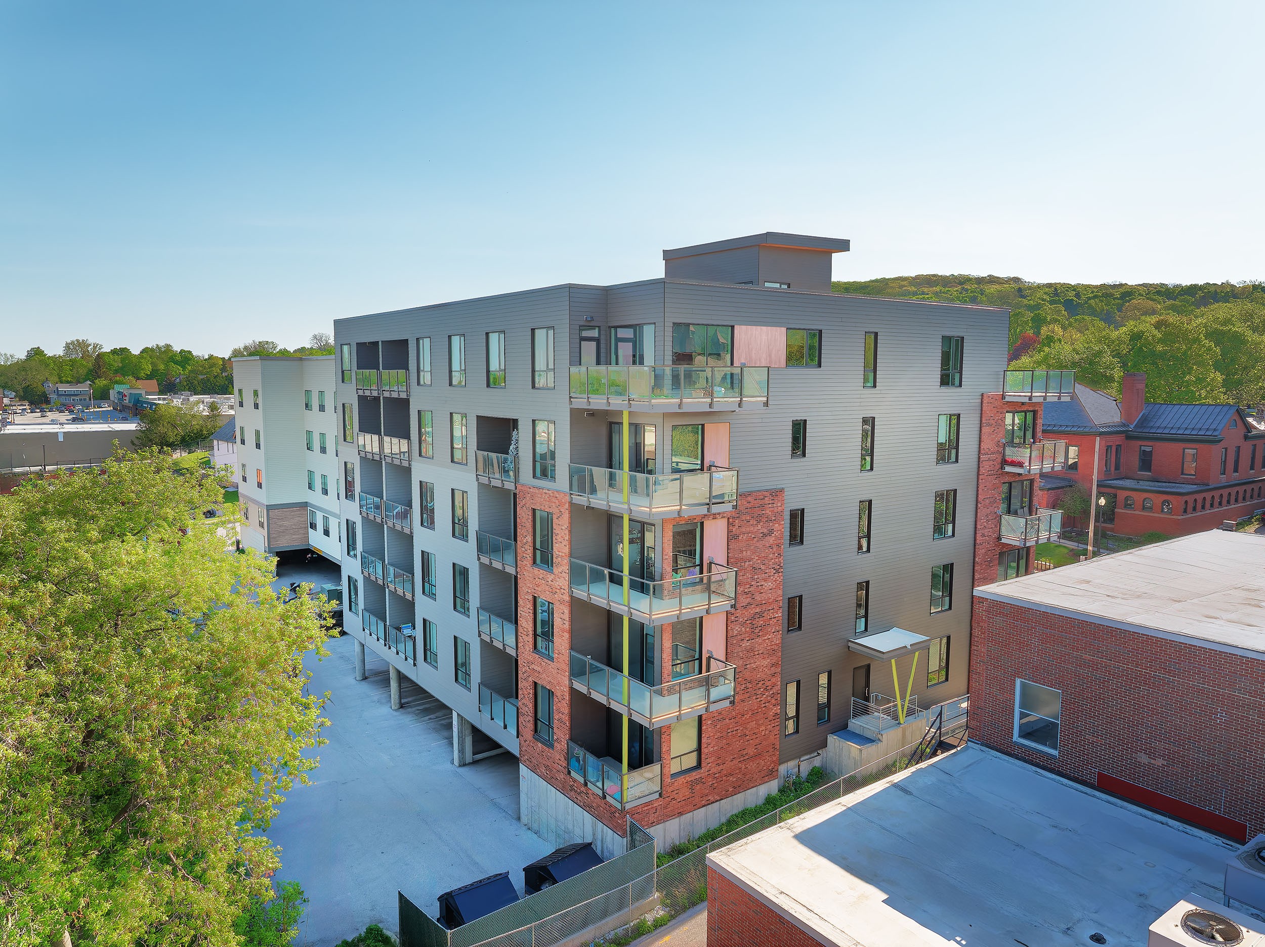 Urban integration of rent-controlled housing within a downtown revitalization project of a municipality. Comprising 32 units above an underground garage with a rooftop terrace.